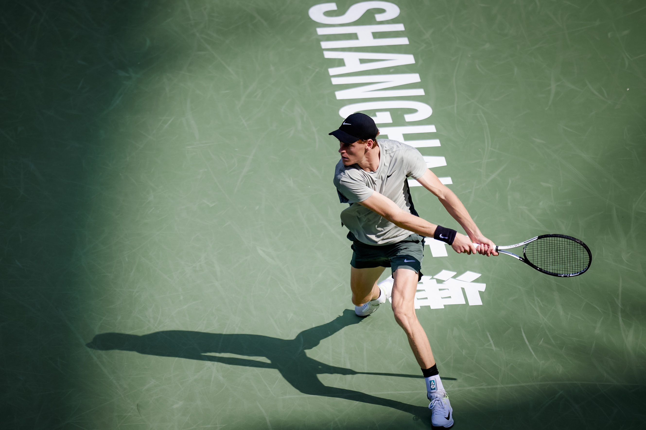 劳力士代言人詹尼克·辛纳在2024年上海劳力士大师赛上反手击球