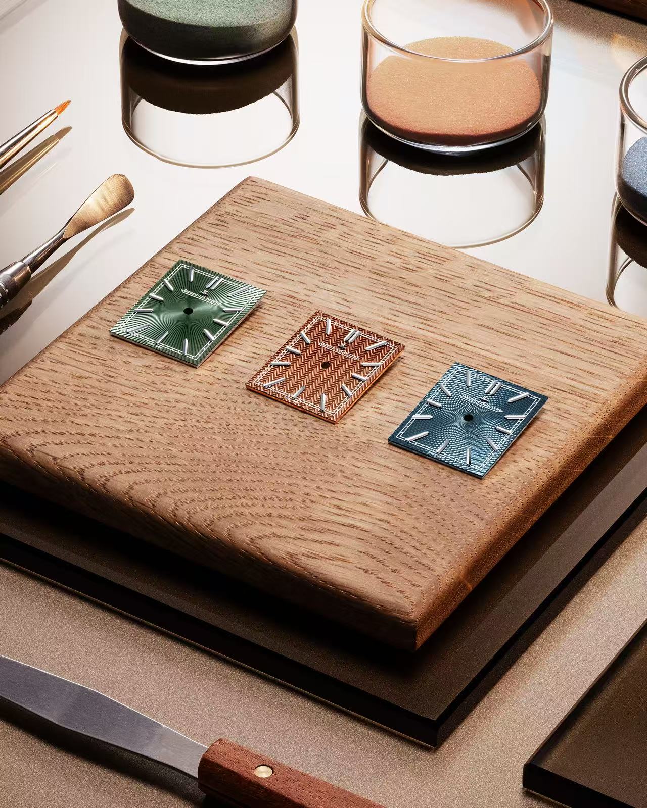 三款腕表分別演繹徐悲鴻不同代表作:「奔馬圖」與「雙駿圖」靈感來自1942年《六駿圖》,「立馬圖」則源自1939年《立馬圖》。表盤亦結合扭索飾紋與大明火琺瑯,每款配色均取材中國畫傳統色韻:松柏綠、遠山藍及朝霞橘,與表背畫作呼應。