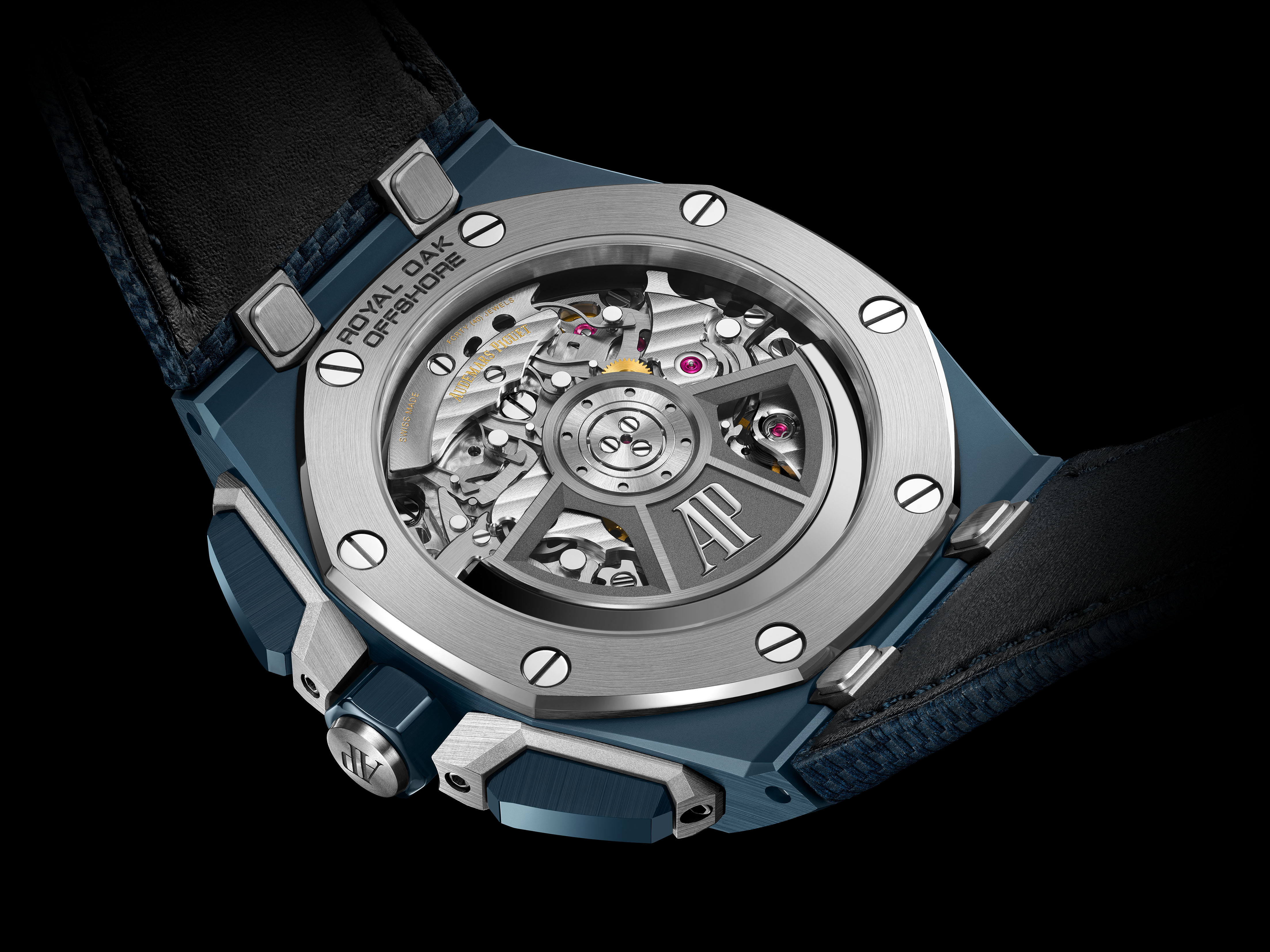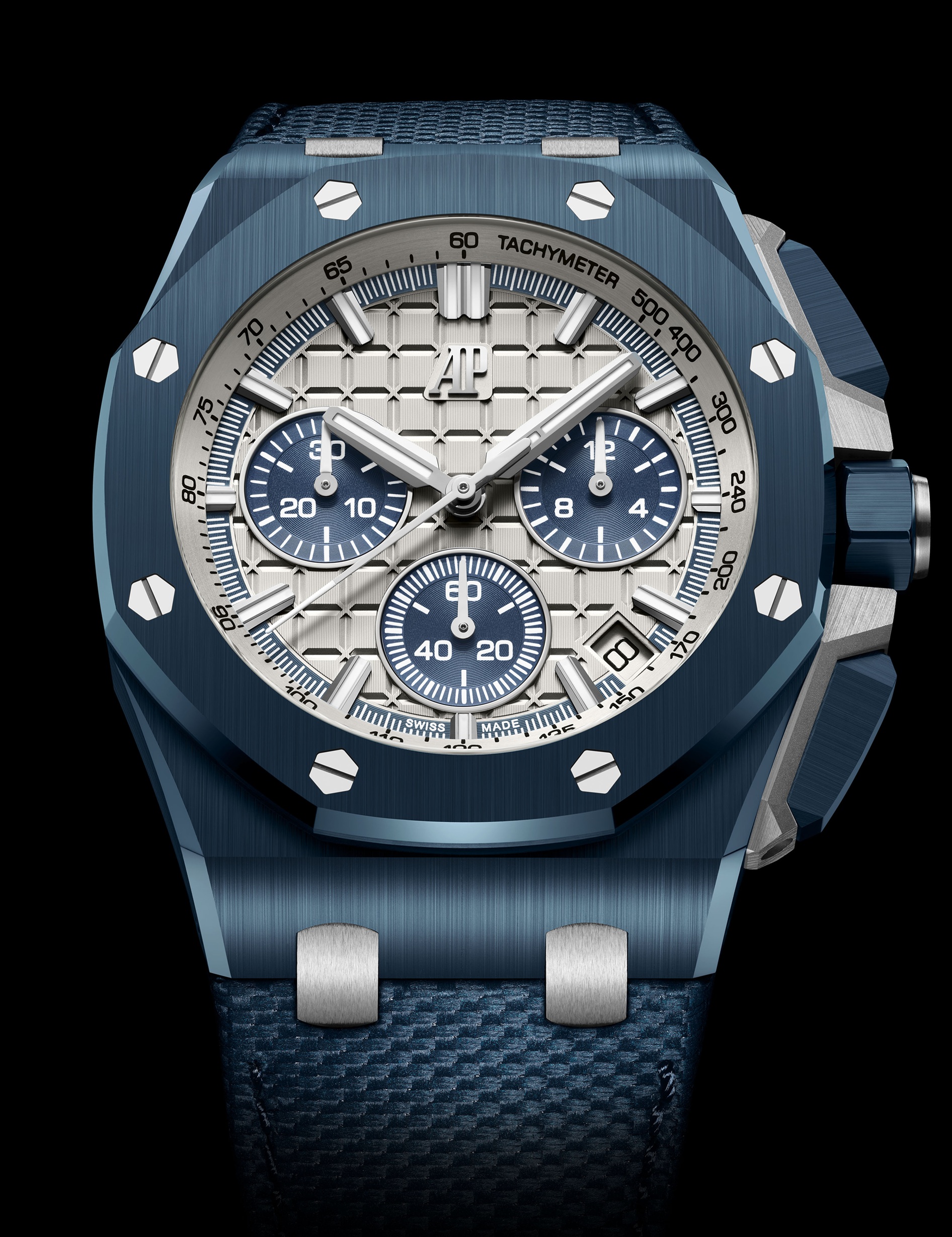 表帶:“夜色藍”紋理小牛皮表帶 搭配鈦金屬 AP 字樣針扣