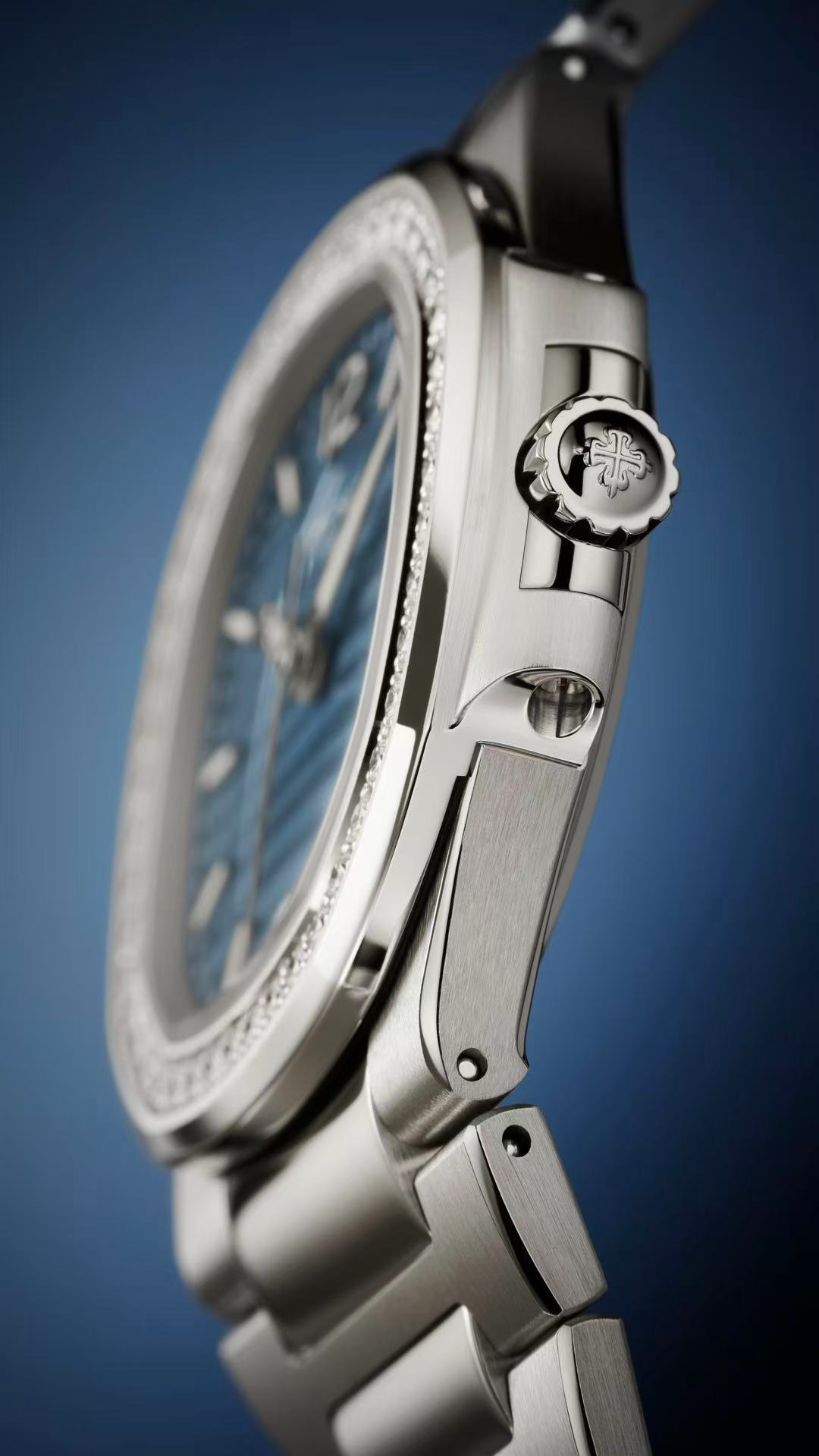 Patek Philippe百達翡麗今年推出專為女士設計的驚艷新作,繼紫色塗漆表面款Nautilus女裝腕表后,同系列又增添新成員——Nautilus女裝腕表7010/1G。